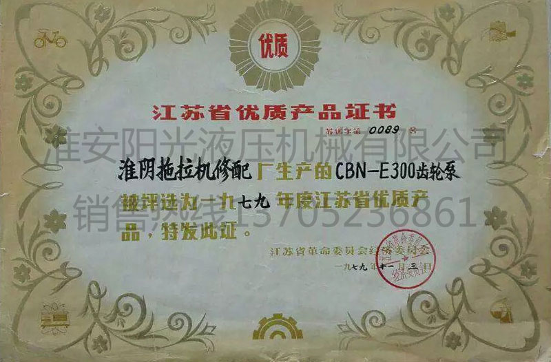 江苏省优质产品证书