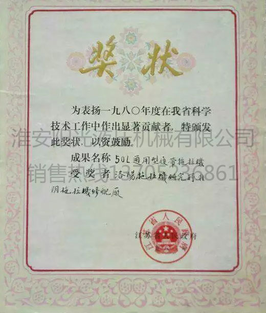 50L通用型履带拖拉机奖状